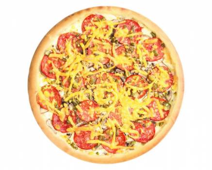 Состав: пепперони, сыр моцарелла, пицца-соус, грибы шампиньоны, перец халапеньо, сыр чеддер, укроп